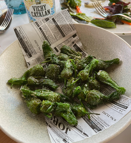 Small fried green peppers that are incredibly snackable – consider this your warning.